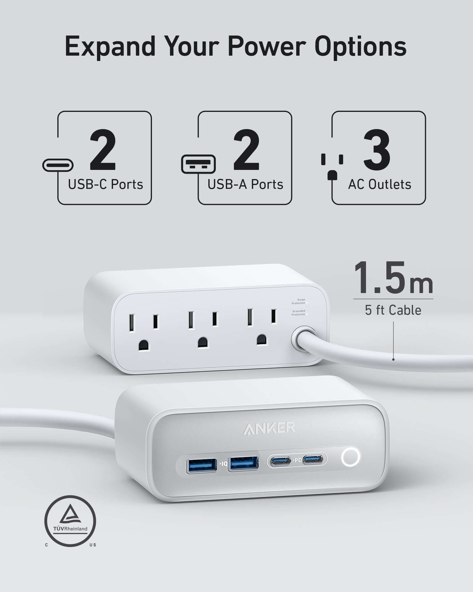 - Powering Versatility Unleashed: Equipped with 3 AC outlets, 2 USB-A, and 2 USB-C ports, this 7-in-1 charging station meets the diverse charging requirements of your devices.