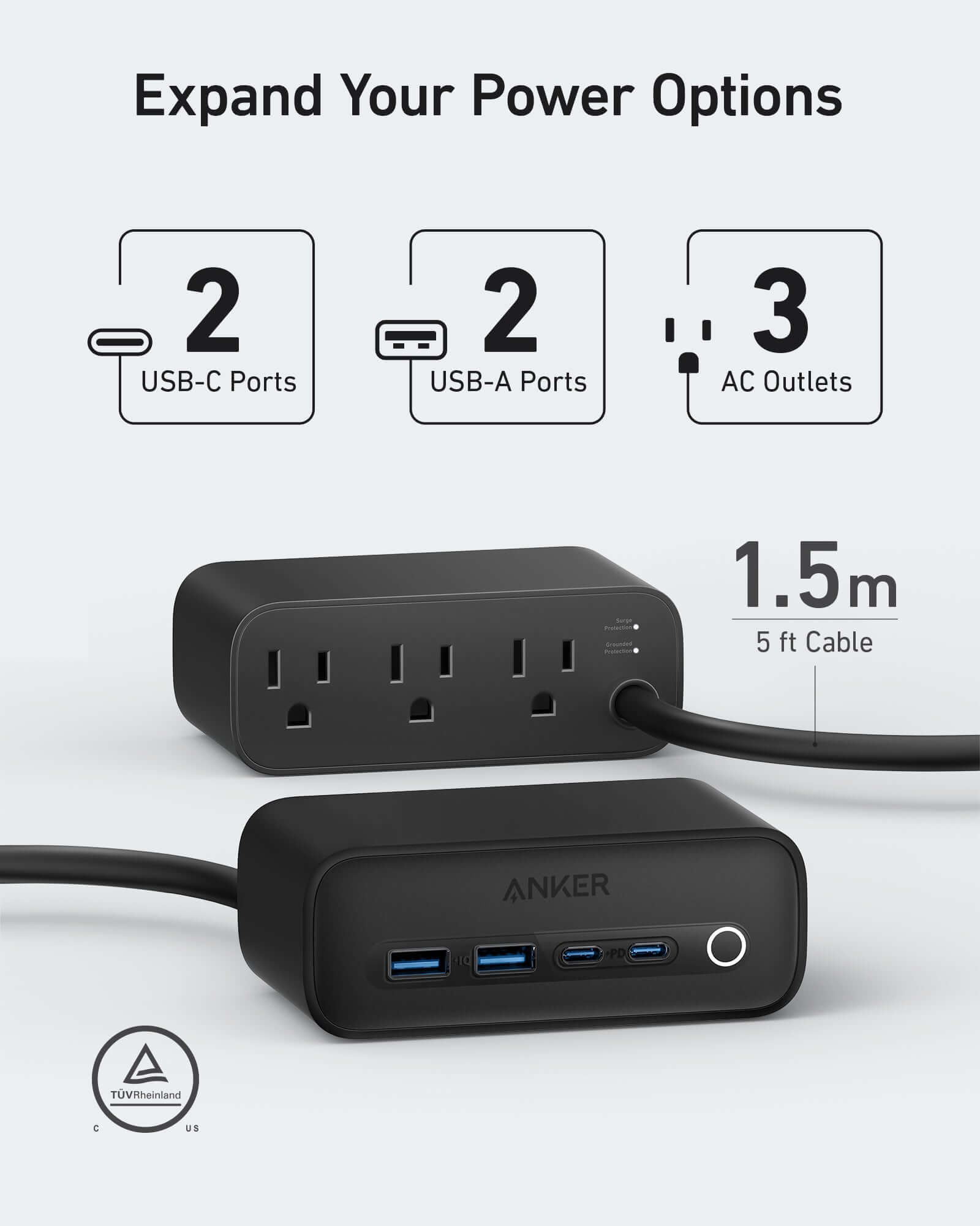 - Streamlined Charging Space: Designed with AC outlets on the back and USB ports in the front for easy access, this layout promotes a clutter-free charging area.